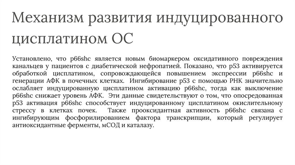 обработкой цисплатином, сопровождающейся повышением экспрессии p66shc и