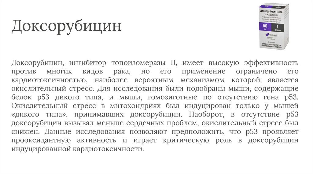 доксорубицин вызывал меньше сердечных проблем, окислительный стресс был