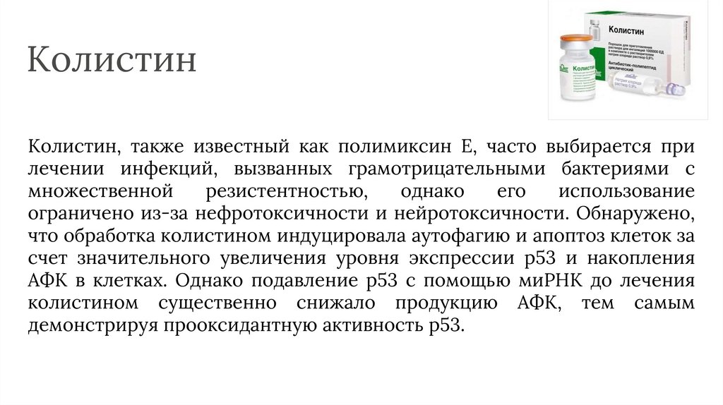 КолистинКолистин, также известный как полимиксин E, часто выбирается при