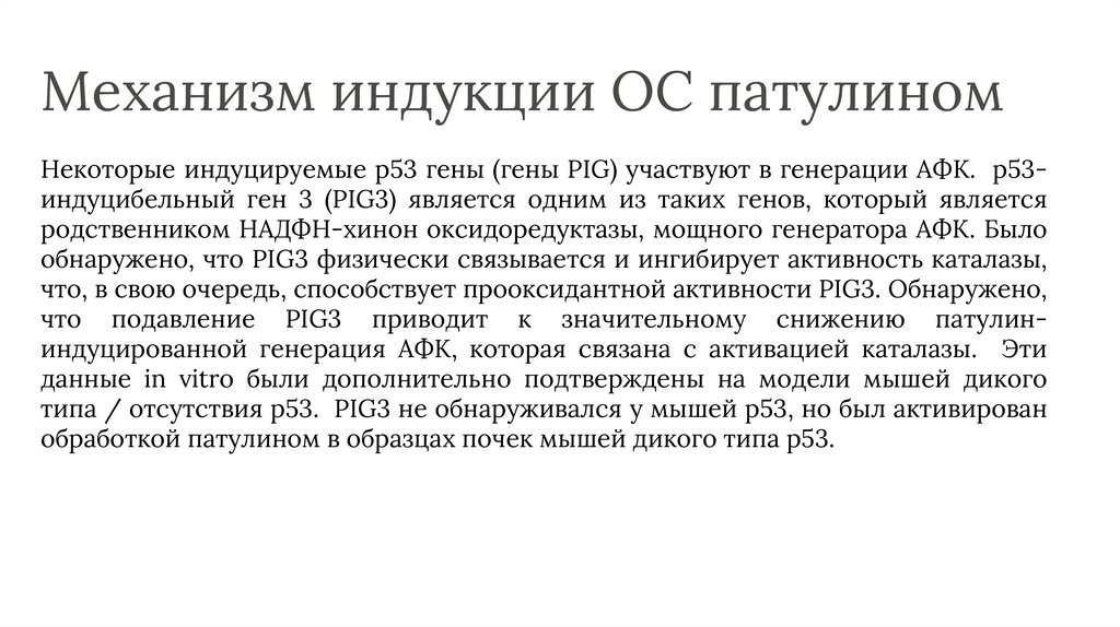 Патулин -> АФК -> p53 -> PIG3 ->каталаза -> АФК