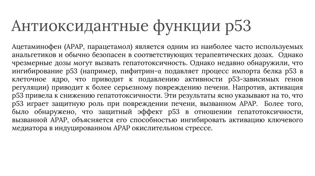 Антиоксидантные функции p53Ацетаминофен (APAP, парацетамол) является одним из наиболее часто используемых