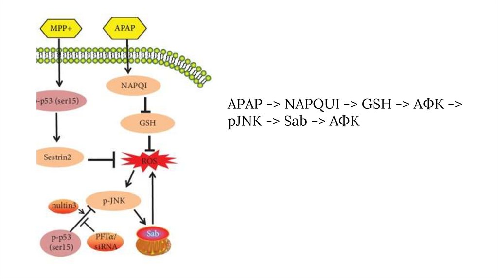 APAP -> NAPQUI -> GSH -> АФК ->pJNK -> Sab -> АФК