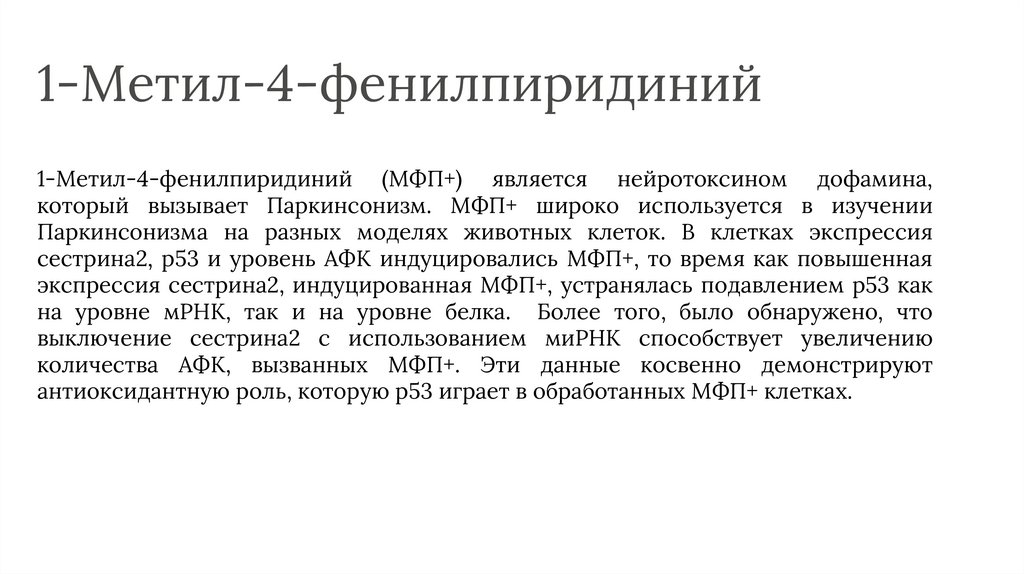 который вызывает Паркинсонизм. МФП+ широко используется в изучении