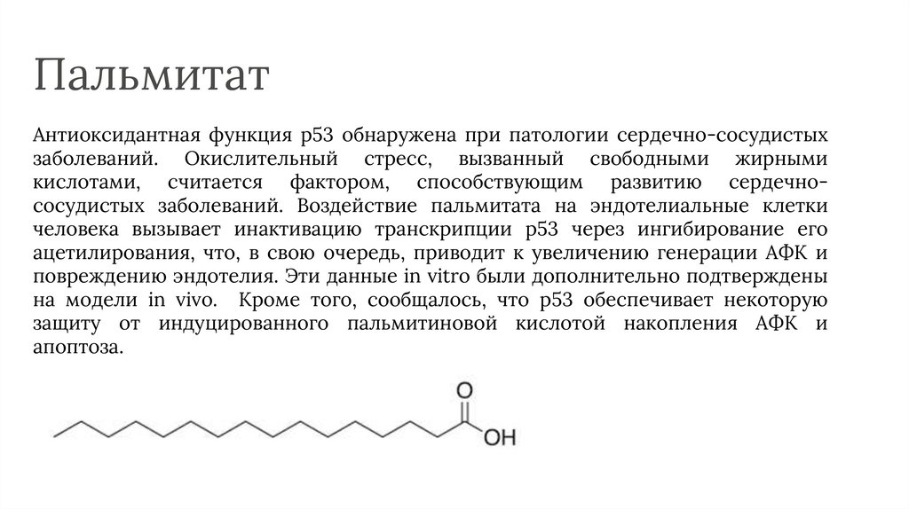 ПальмитатАнтиоксидантная функция p53 обнаружена при патологии сердечно-сосудистых