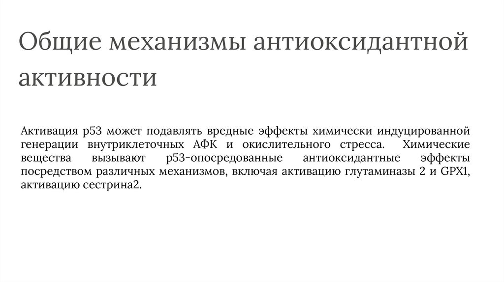 Общие механизмы антиоксидантнойактивности