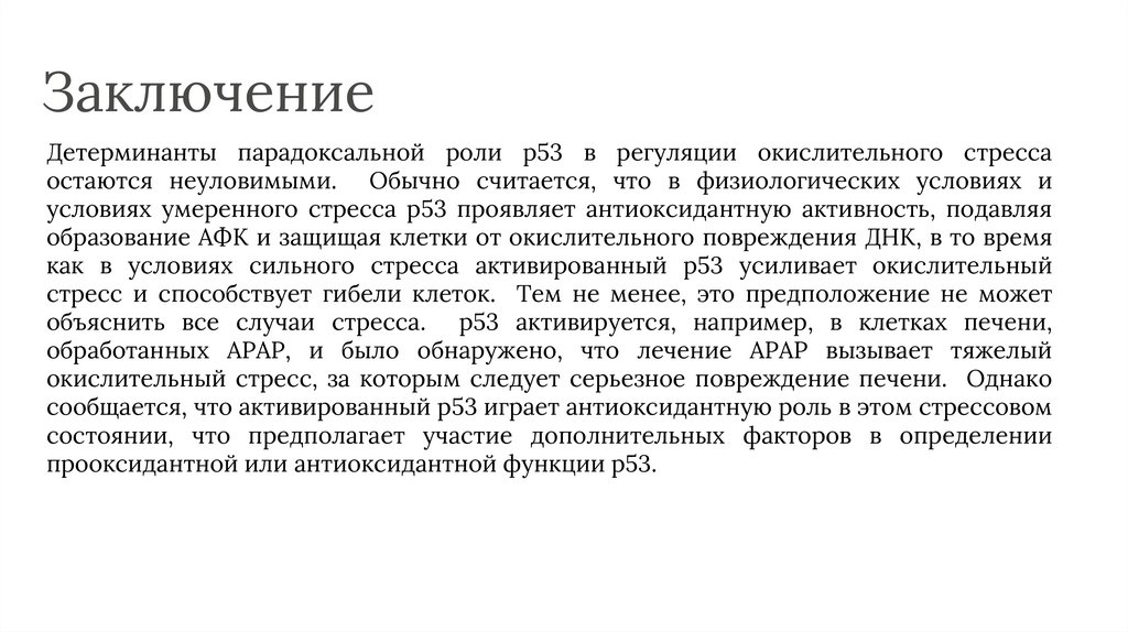 ЗаключениеДетерминанты парадоксальной роли p53 в регуляции окислительного стресса