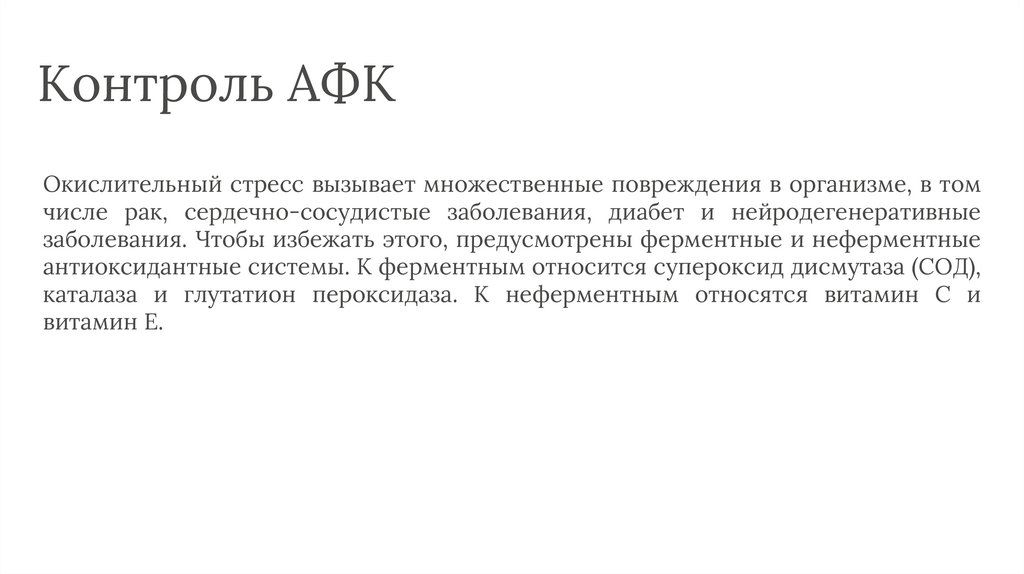Контроль АФКОкислительный стресс вызывает множественные повреждения в организме, в том