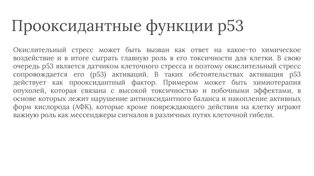 Прооксидантные функции p53Окислительный стресс может быть вызван как ответ на какое-то химическое