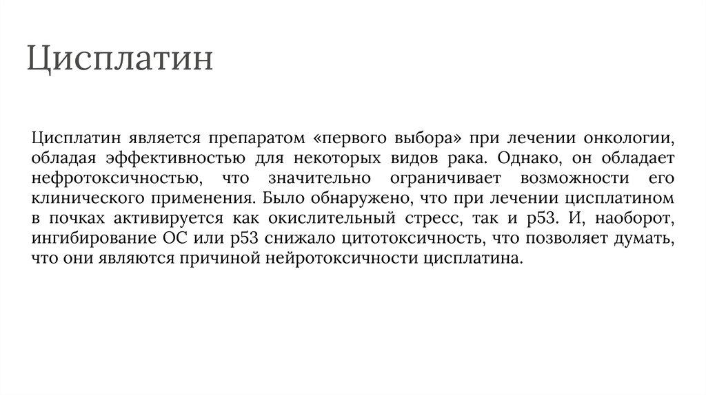 клинического применения. Было обнаружено, что при лечении цисплатином